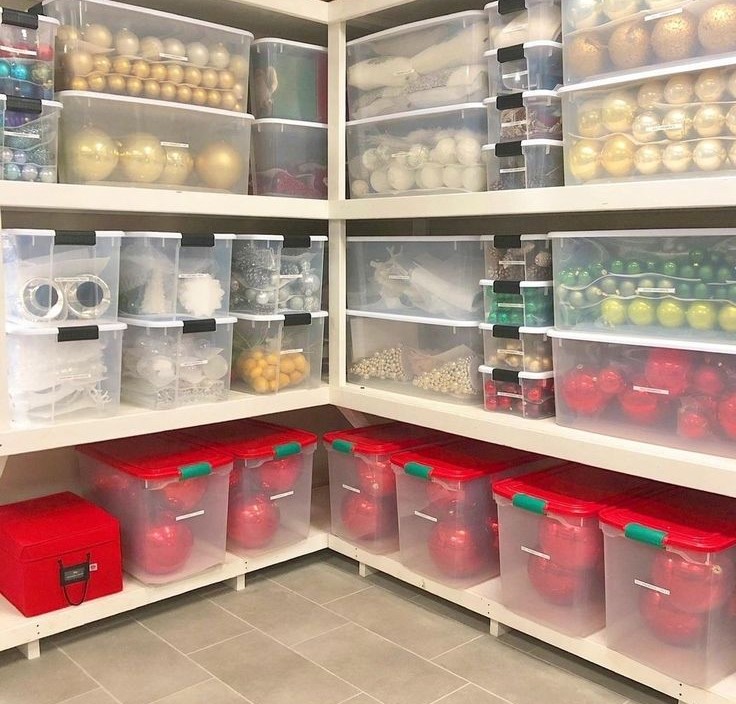 - IF you have the square footage then a ‘Christmas closet’ might be a good use of space. Storage shelves with labeled totes and a spot to keep the tree assembled and covered, would be drool worthy for us Type A’s. Dare I even say a wrapping paper rack?? K I need to stop.